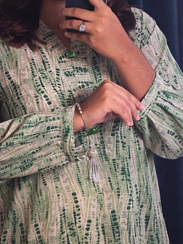 Green Abstract Korean Georgette One-Piece – trendy one-piece dress in premium Korean georgette with artistic green abstract stripe prints.