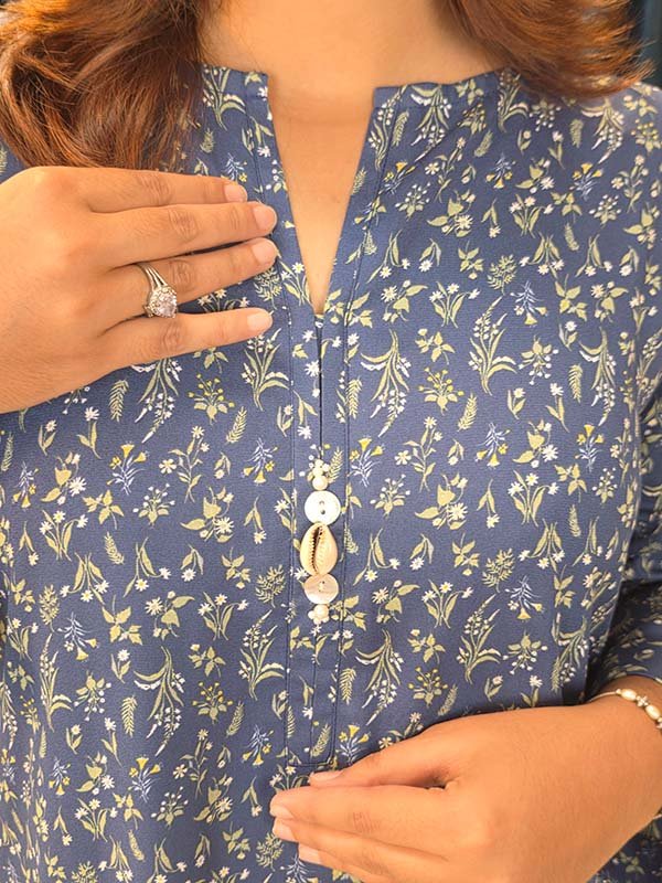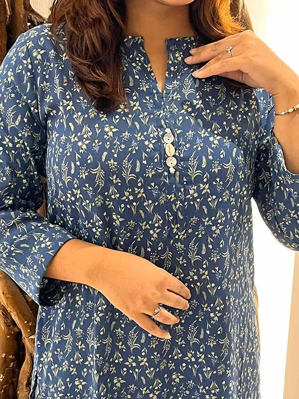 Indigo Paisley Imported Georgette One-Piece – graceful one-piece dress in premium imported georgette featuring subtle indigo paisley leaf prints.