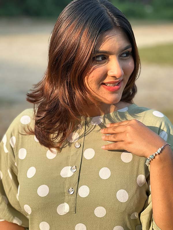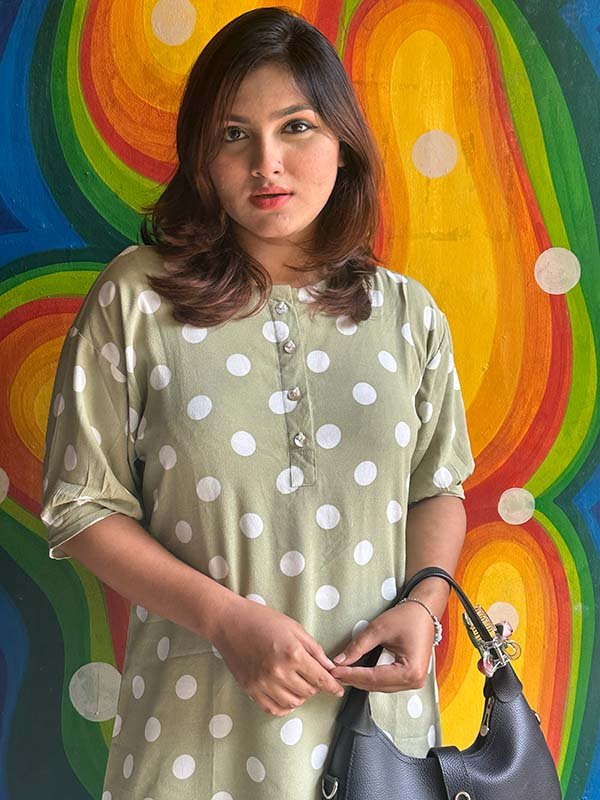 Mint Polka Dot Imported Georgette One-Piece – fresh one-piece dress in premium imported georgette with playful mint green polka dot print.