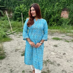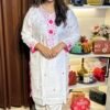 • Salwar: Paired with comfortable, plain white salwar (trousers) for a balanced and effortlessly chic appearance.
