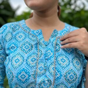 Be the first to review “Vibrant Sky Blue Motif Two-Piece Outfit”